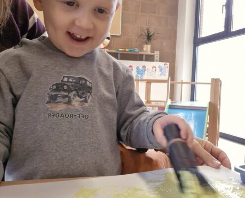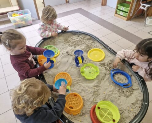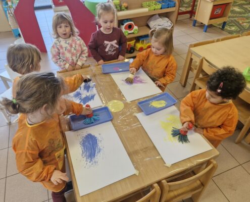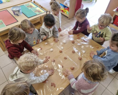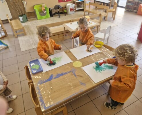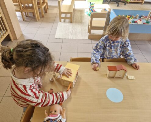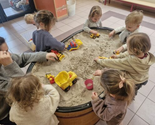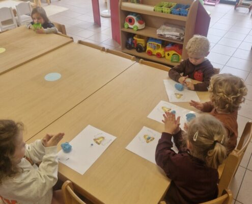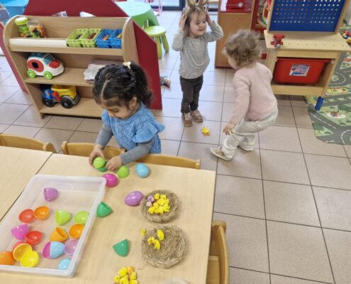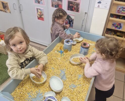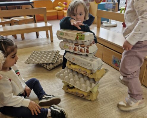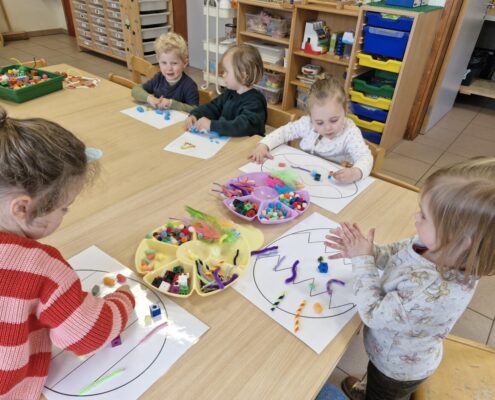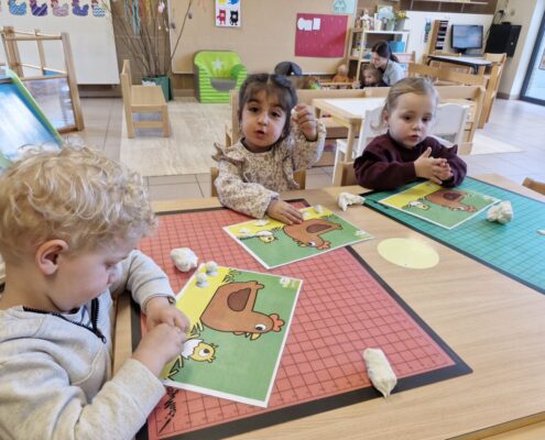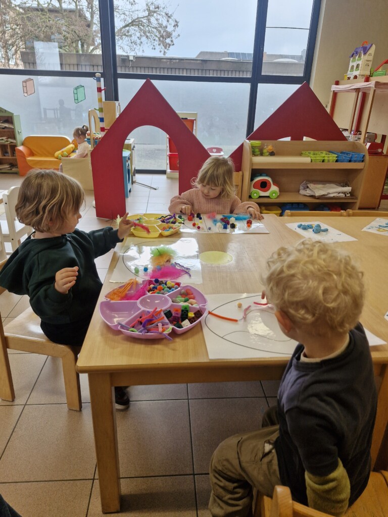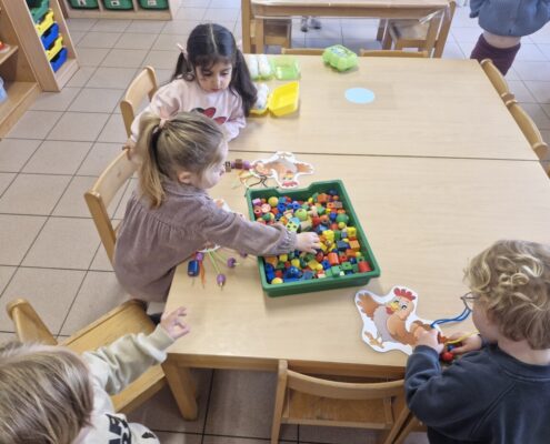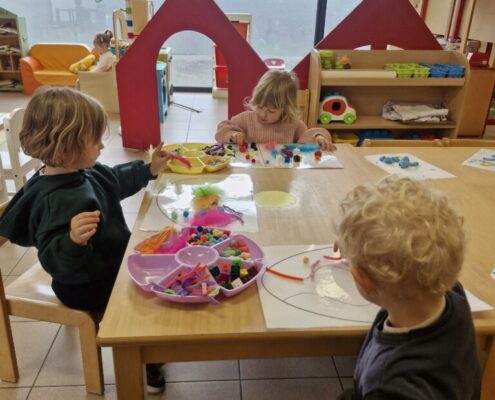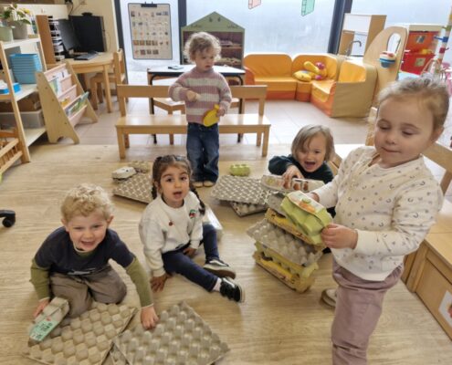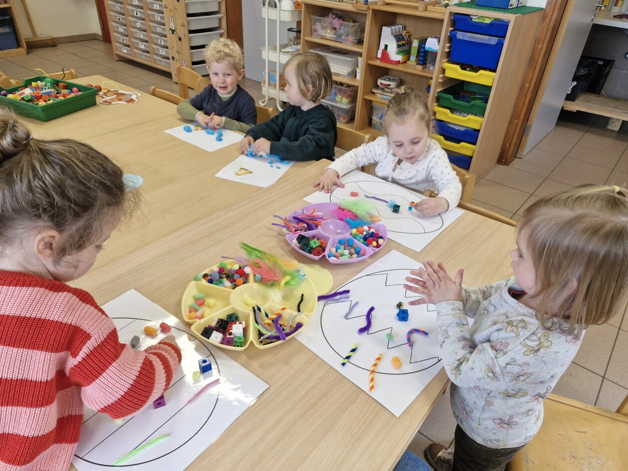 In de klas konden we naar hartenlust spelen met kippenhokjes, (vorm)eieren, de ontdekbak met maïs en nog zoveel meer. In de huishoek konden we zelf kip spelen en in ons kippenhok konden we zorgen voor onze eigen kippen. We gaven ze stro, ze konden lekkere wormen zoeken in het gras en uiteindelijk legden ze ook eitjes!