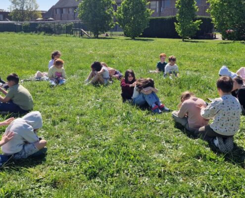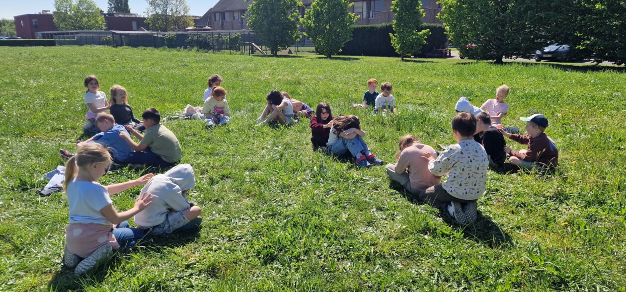 De leerlingen van 2A trokken de natuur in voor een heerlijk speels moment van ontspanning. Ze leefden zich in alsof ze een boom waren, deden enkele yogaposes en genoten van een relaxerende massage.