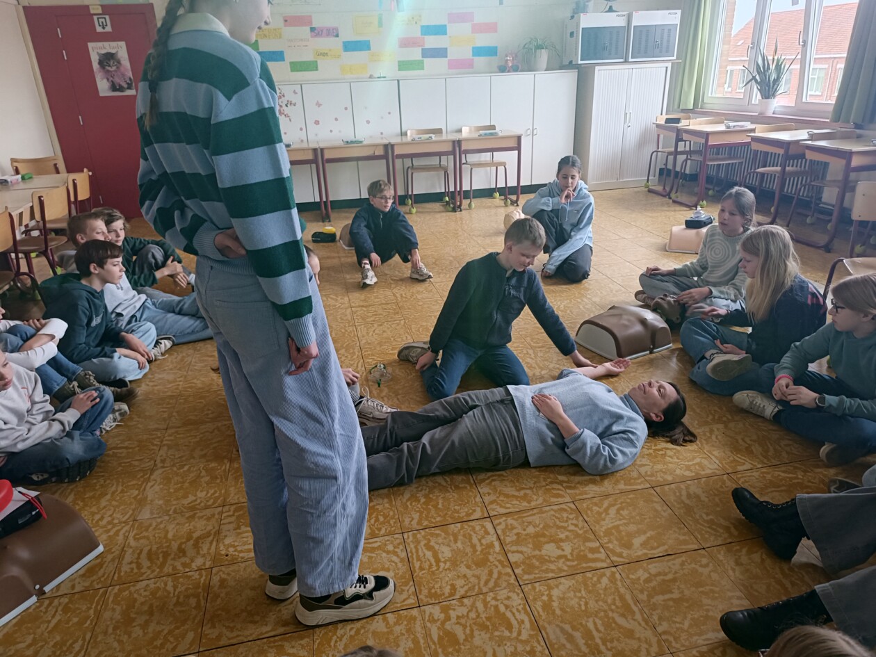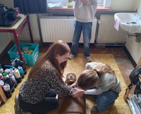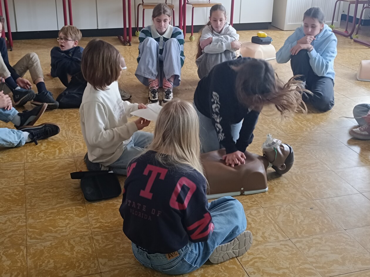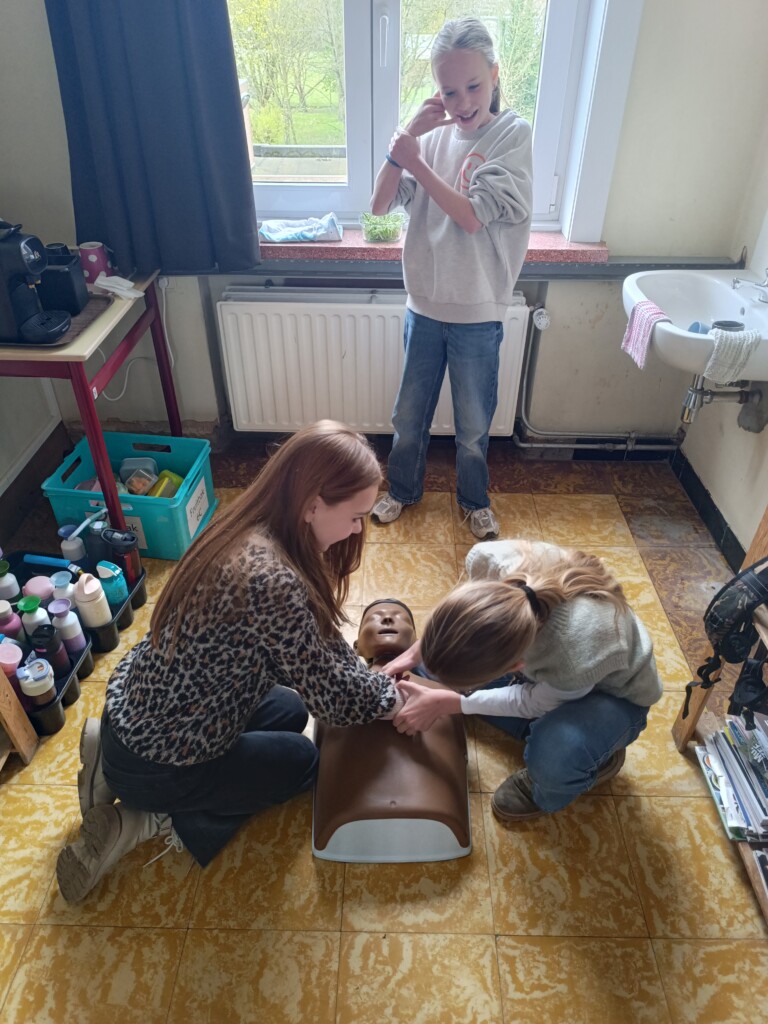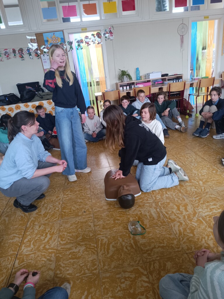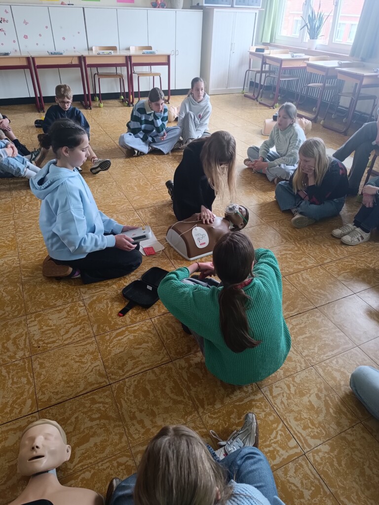 Eind maart kregen we bezoek van enkele vrijwilligers van het Rode Kruis in Lochristi voor een workshop EHBO. De workshop startte met een opfrissing van de theorie. Nadien volgde de inoefening en toepassing in de praktijk. We leerden ook vlot werken met een AED. Aan de hand van allerlei actieve werkvormen en rollenspelen leerden we de basis van eerste hulp en de reanima