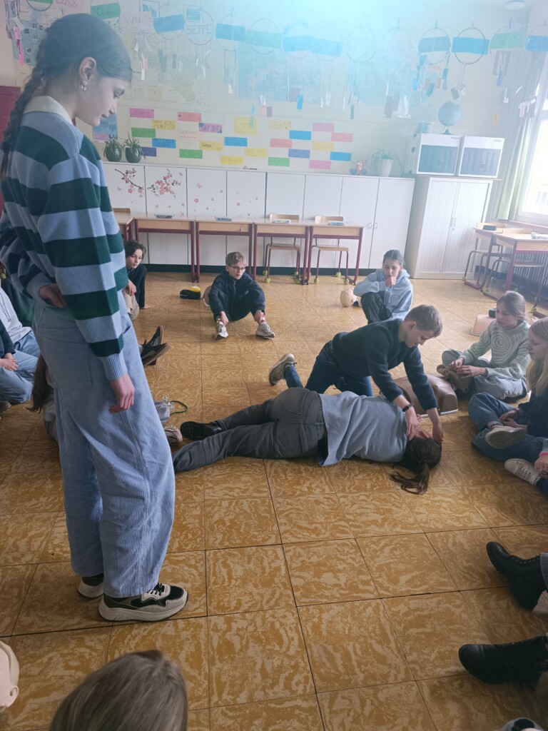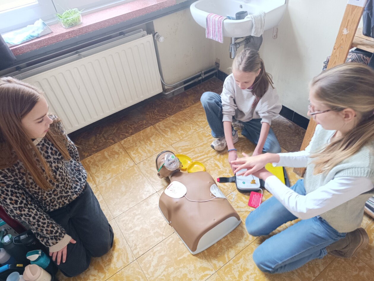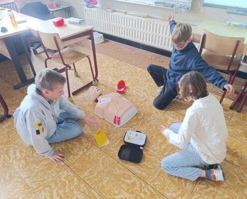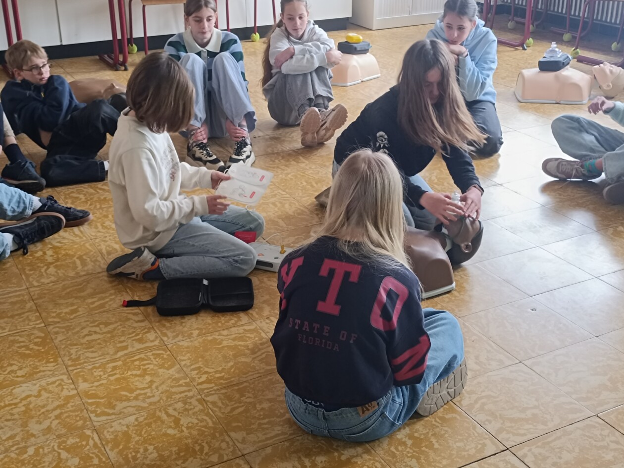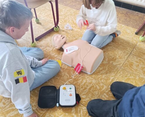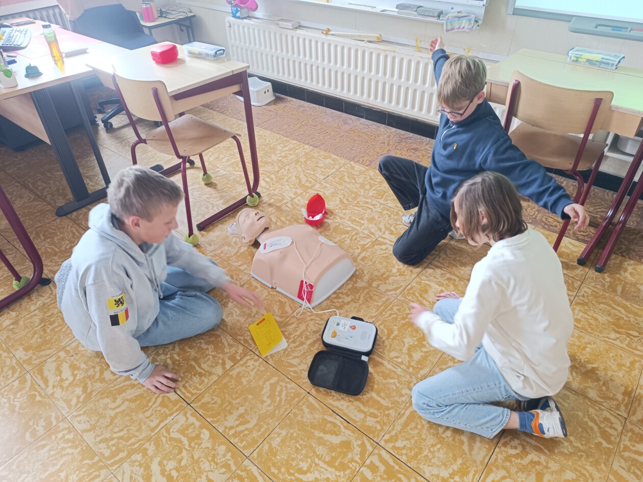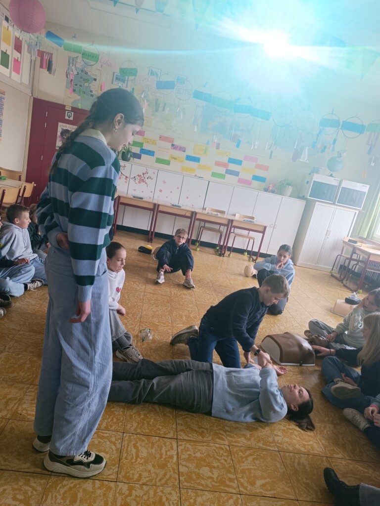 Eind maart kregen we bezoek van enkele vrijwilligers van het Rode Kruis in Lochristi voor een workshop EHBO. De workshop startte met een opfrissing van de theorie. Nadien volgde de inoefening en toepassing in de praktijk. We leerden ook vlot werken met een AED. Aan de hand van allerlei actieve werkvormen en rollenspelen leerden we de basis van eerste hulp en de reanima