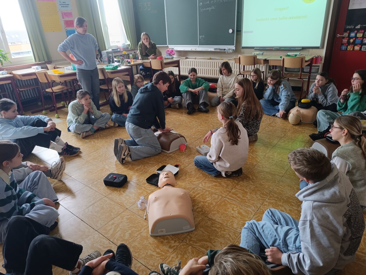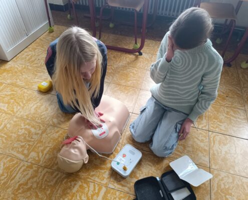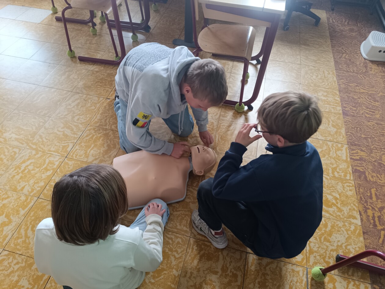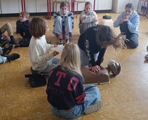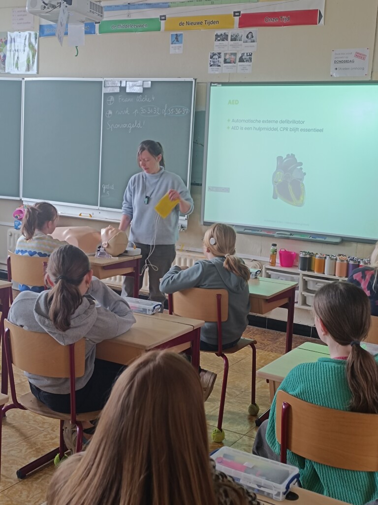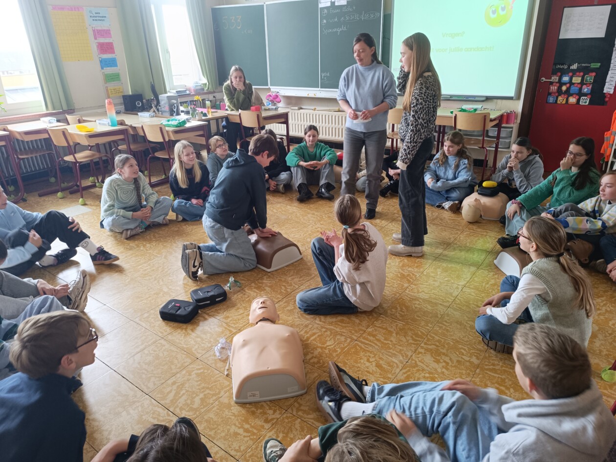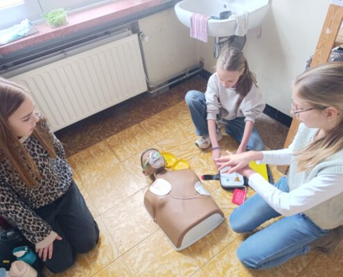 Eind maart kregen we bezoek van enkele vrijwilligers van het Rode Kruis in Lochristi voor een workshop EHBO. De workshop startte met een opfrissing van de theorie. Nadien volgde de inoefening en toepassing in de praktijk. We leerden ook vlot werken met een AED. Aan de hand van allerlei actieve werkvormen en rollenspelen leerden we de basis van eerste hulp en de reanima