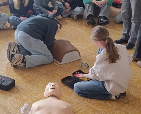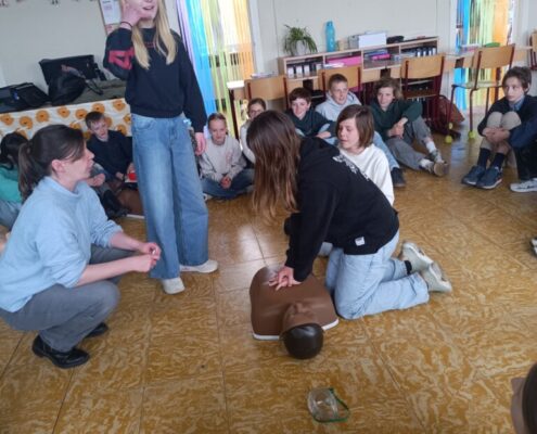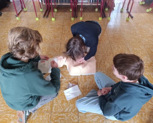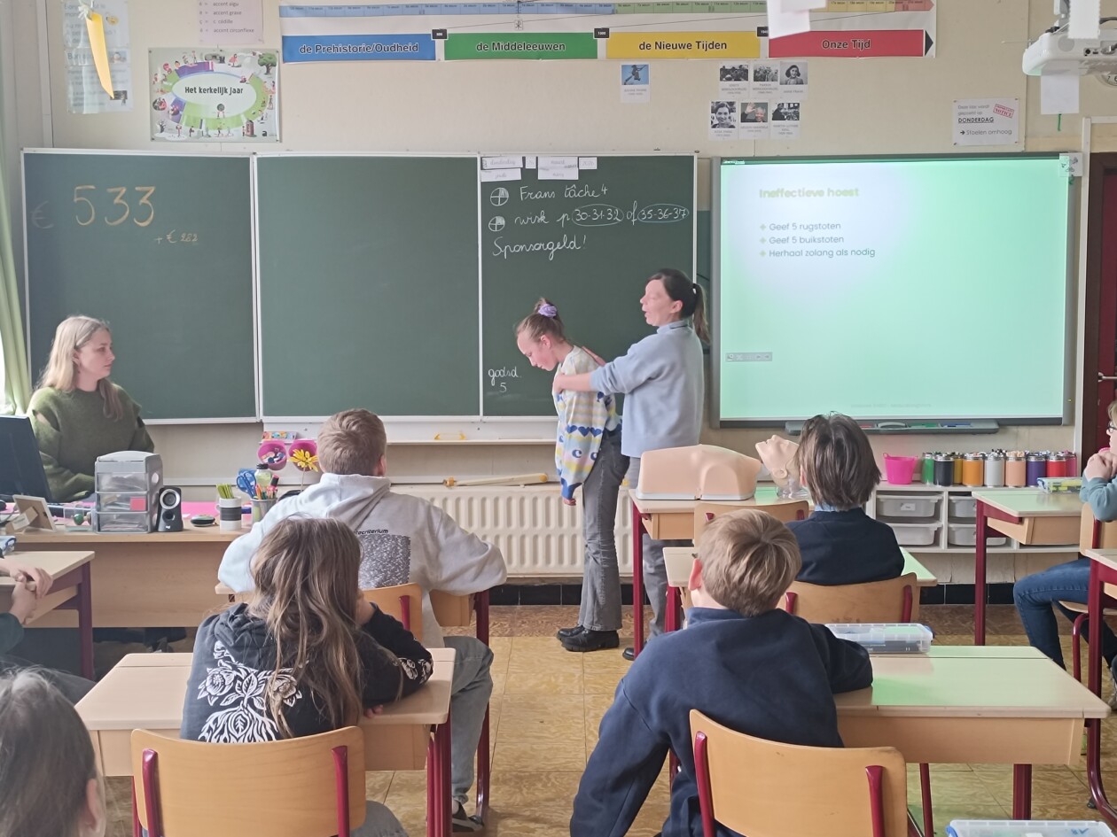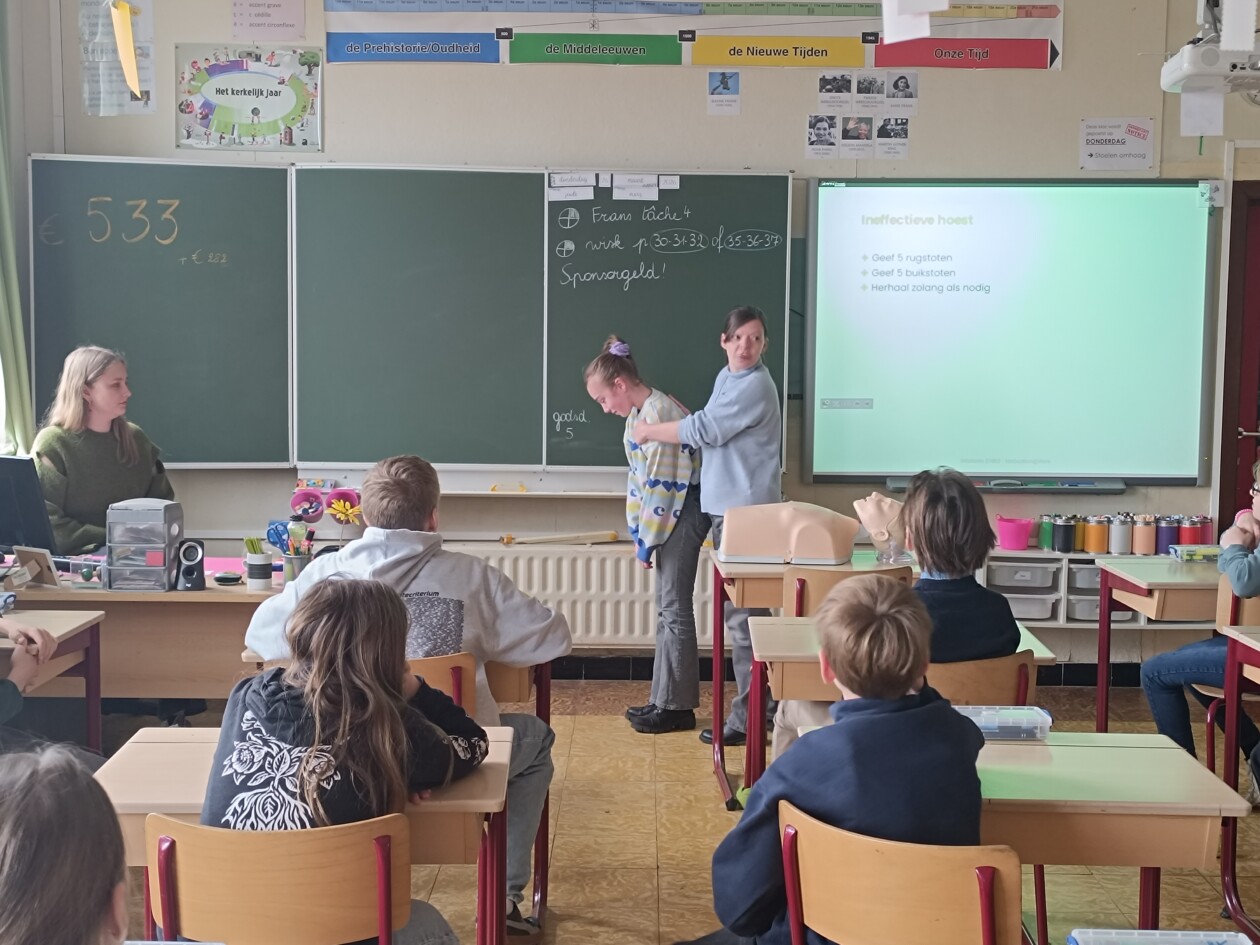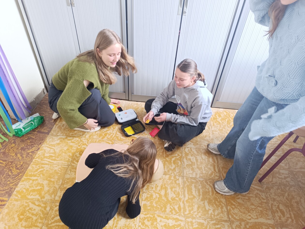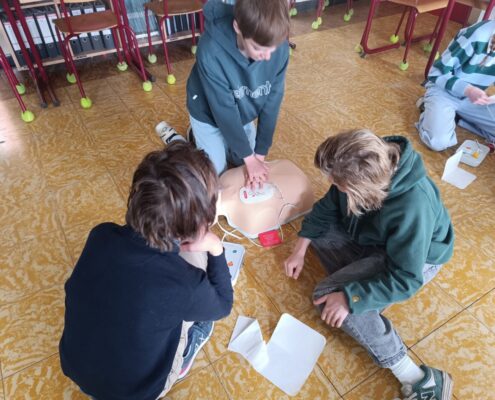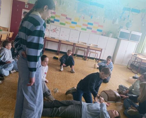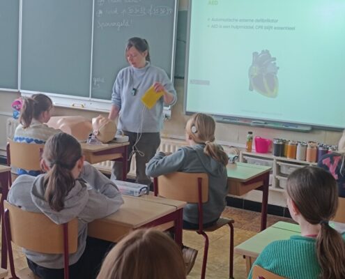 Eind maart kregen we bezoek van enkele vrijwilligers van het Rode Kruis in Lochristi voor een workshop EHBO. De workshop startte met een opfrissing van de theorie. Nadien volgde de inoefening en toepassing in de praktijk. We leerden ook vlot werken met een AED. Aan de hand van allerlei actieve werkvormen en rollenspelen leerden we de basis van eerste hulp en de reanima