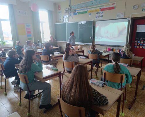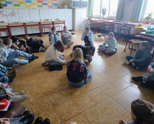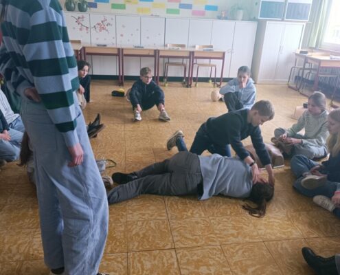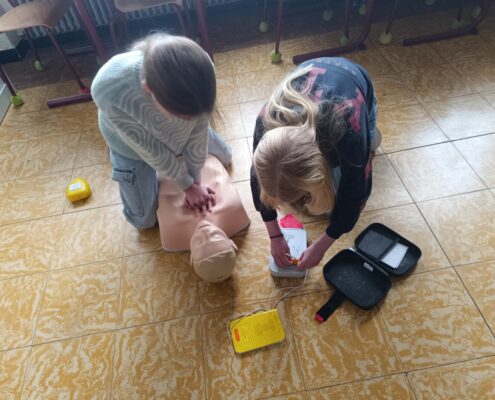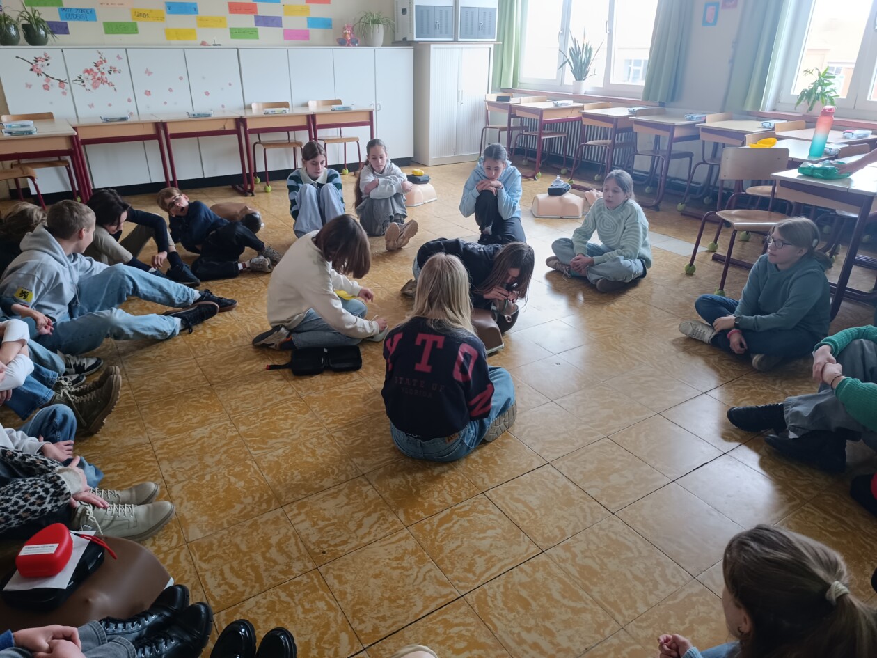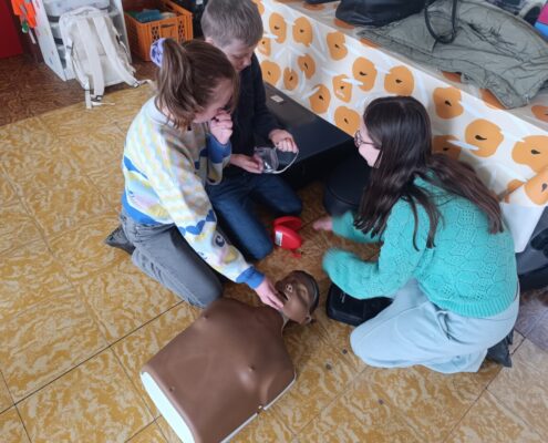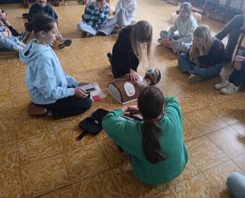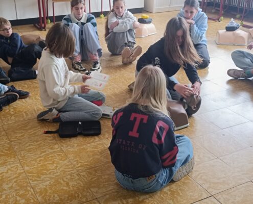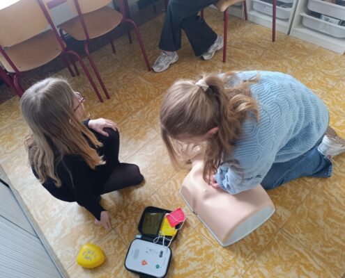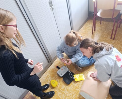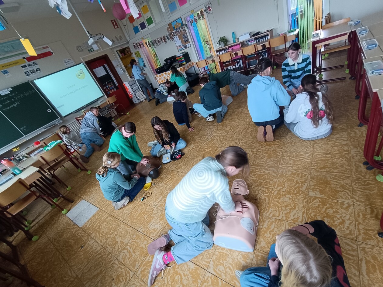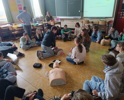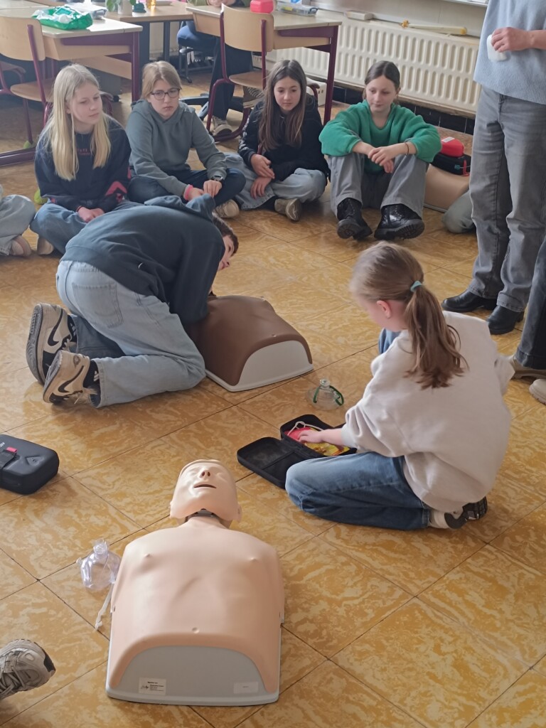 Eind maart kregen we bezoek van enkele vrijwilligers van het Rode Kruis in Lochristi voor een workshop EHBO. De workshop startte met een opfrissing van de theorie. Nadien volgde de inoefening en toepassing in de praktijk. We leerden ook vlot werken met een AED. Aan de hand van allerlei actieve werkvormen en rollenspelen leerden we de basis van eerste hulp en de reanima
