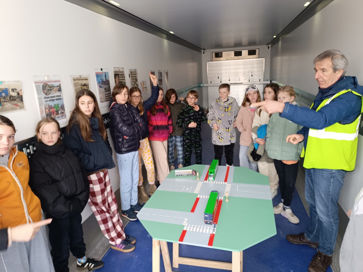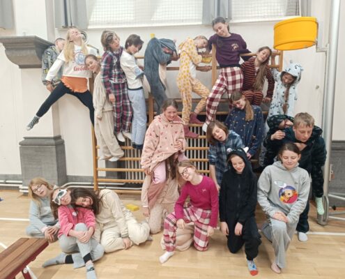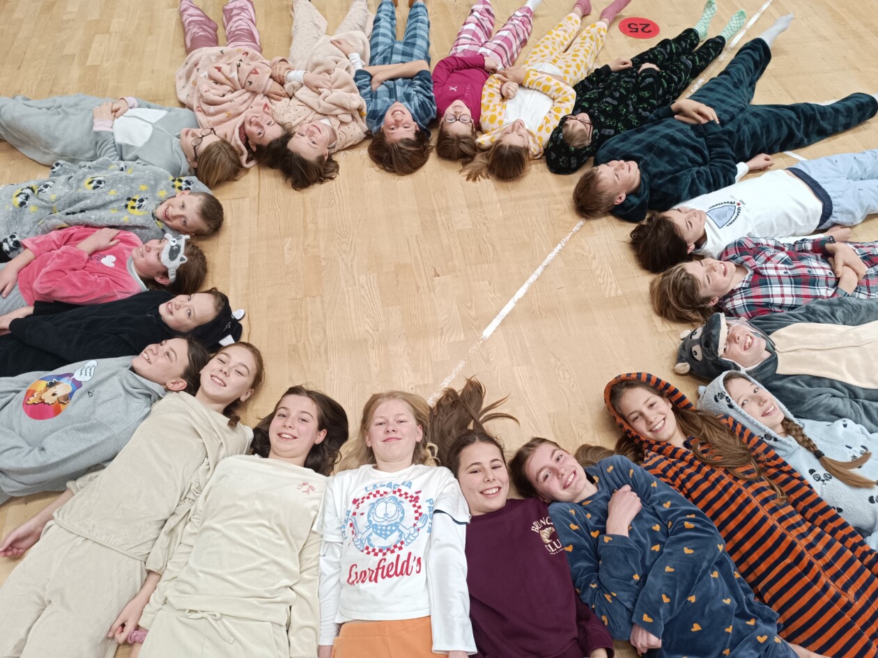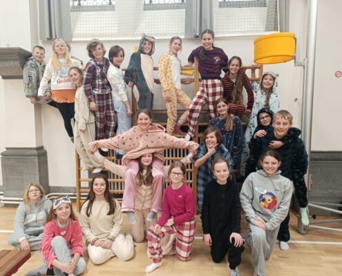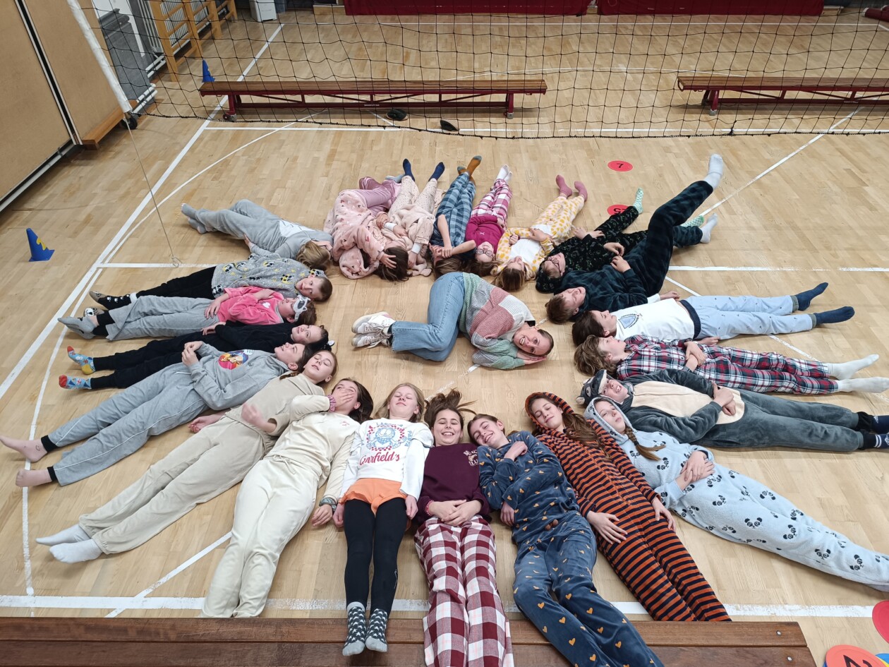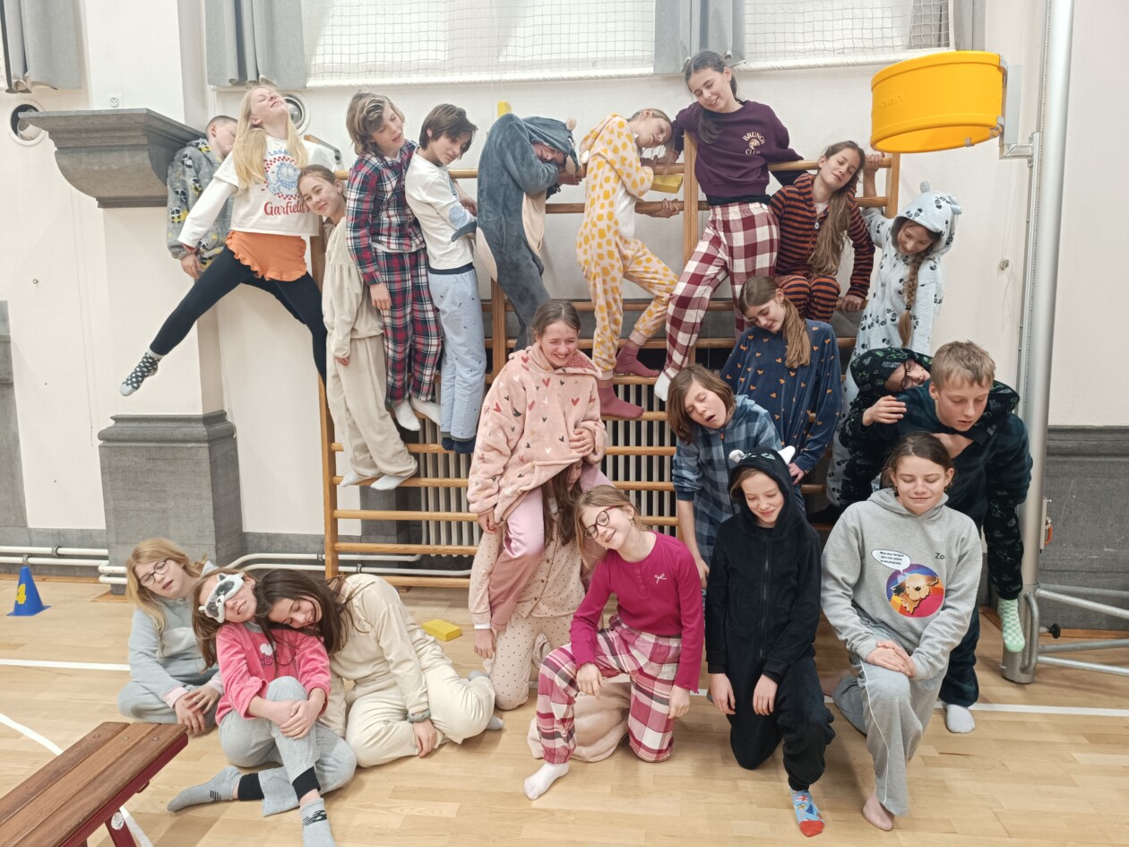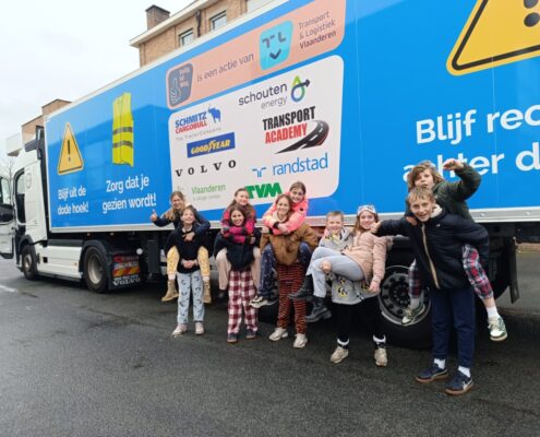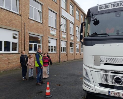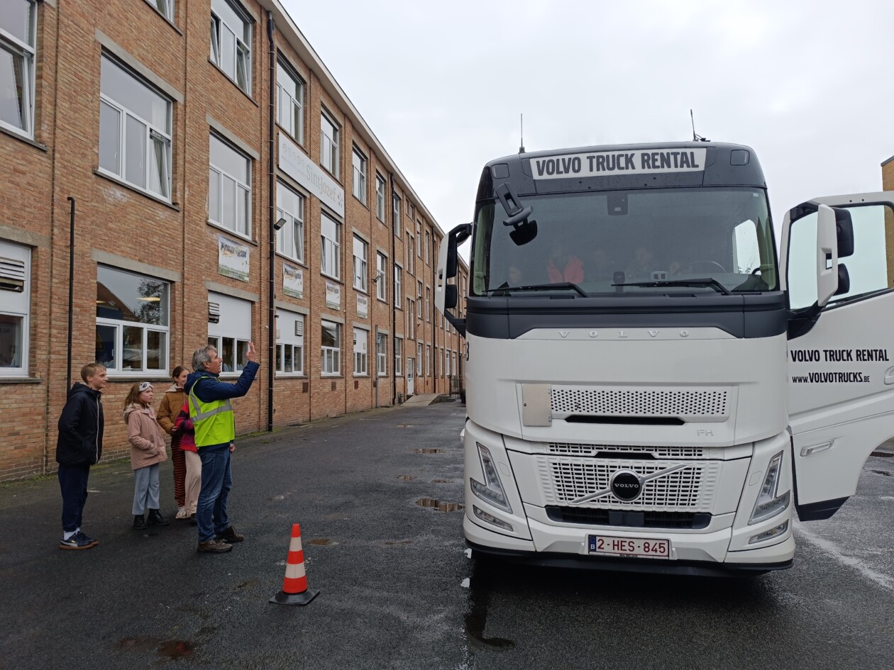 Dodehoekongevallen zijn een blijvend actueel thema en daarom zetten we op onze school actief in op dodehoekeducatie. Een vrijwilliger van “Transport en Logistiek Vlaanderen” kwam in maart naar school met de vrachtwagen voor de sensibiliseringscampagne “Veilig op weg”. We startten met wat theorie waaronder de 4 belangrijkste vuistregels om vervolgens in de praktijk de gevaren van de dode hoek te ondervinden. In maart kwamen we ook in pyjama naar school. We willen op die manier steun bieden aan zieke kinderen en jongeren die tijdelijk of langdurig niet fysiek naar school kunnen. Tijdens de wiskundeles ervaarden we nog eens concreet de kijklijnen in de klas. Wie uit de klas is wel zichtbaar en wie is niet zichtbaar vanuit een bepaalde positie? Hoe kan ik mijn gezichtsveld verbreden of versmallen? Wij herhaalden de theorie en beleefden het in praktijk.