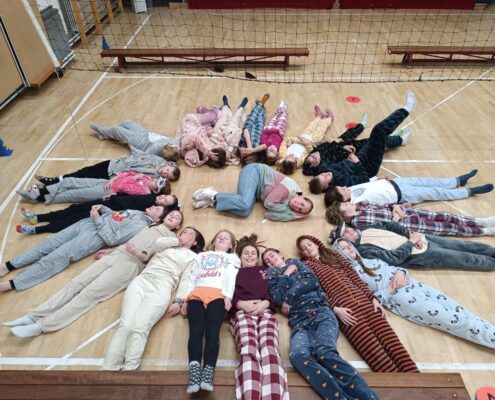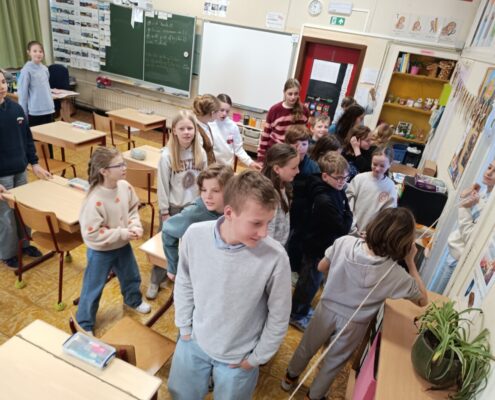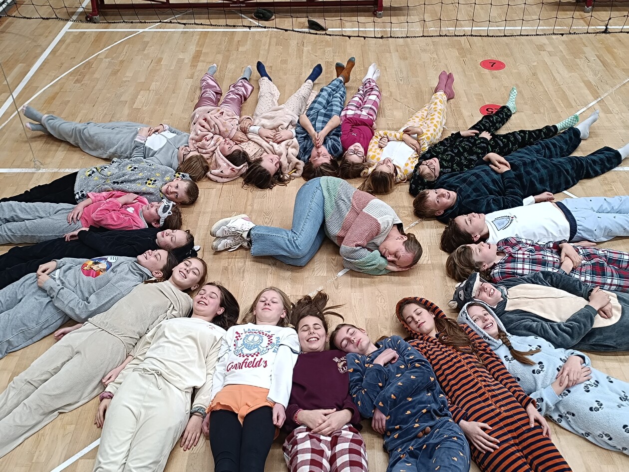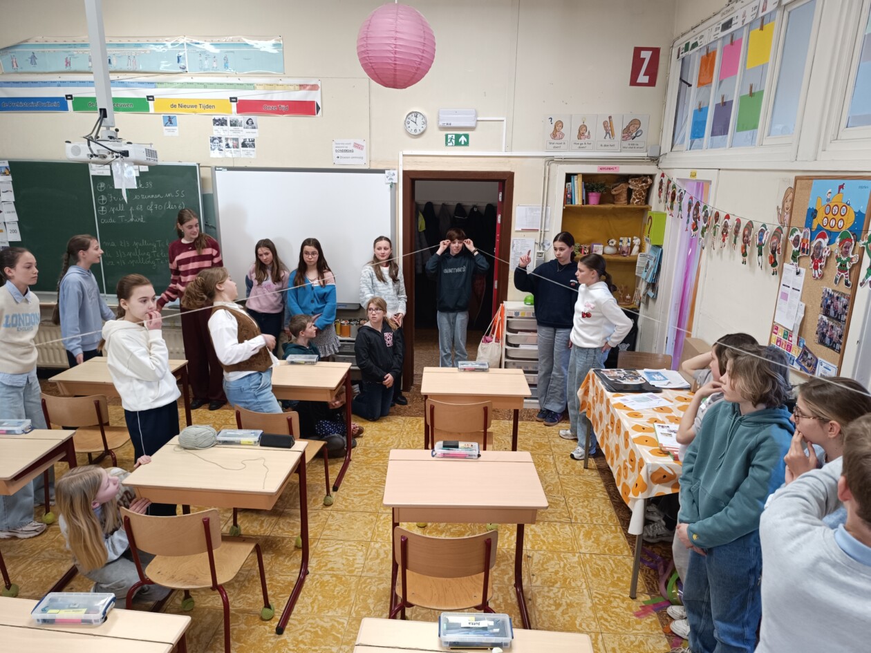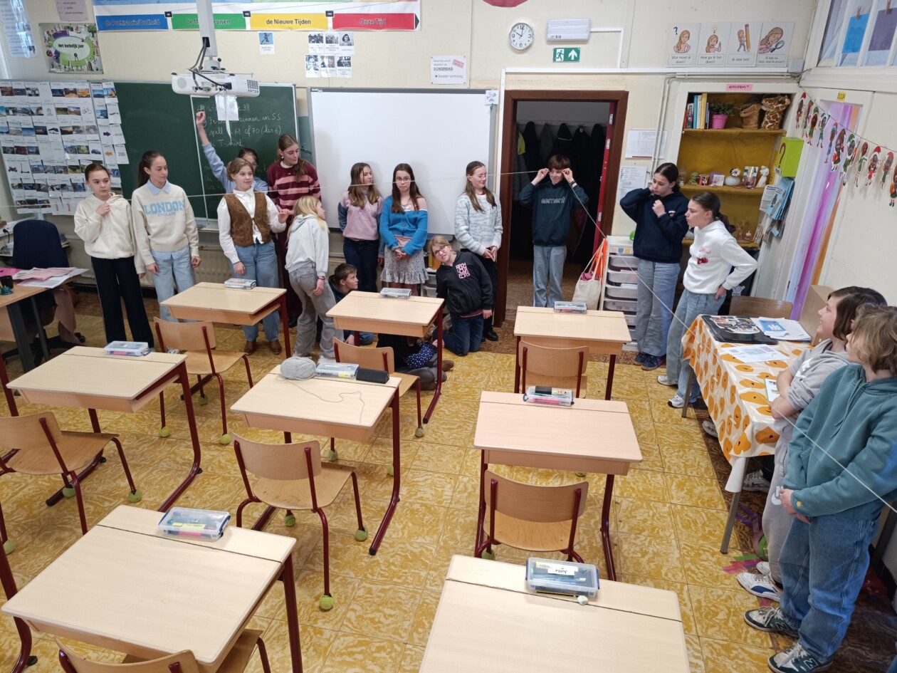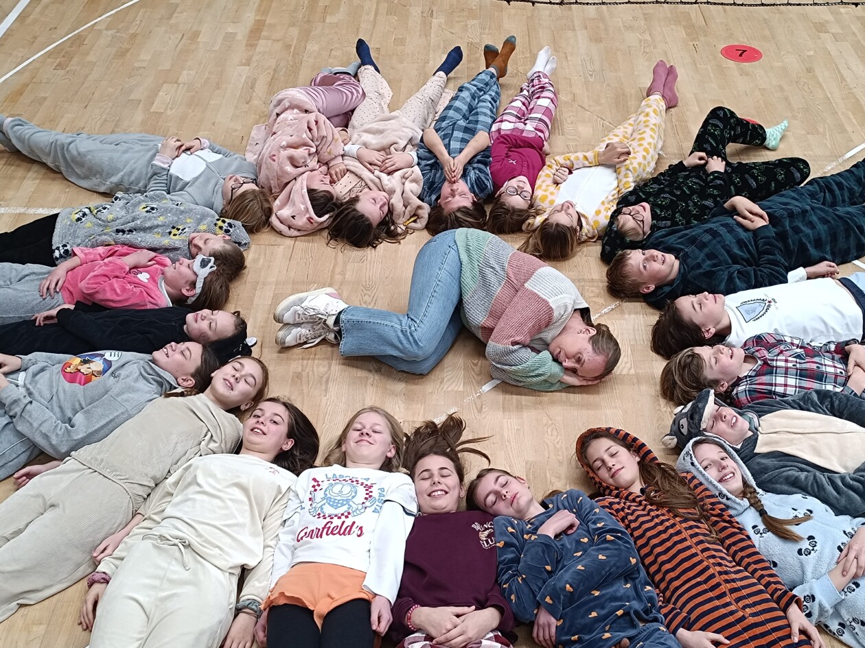 Dodehoekongevallen zijn een blijvend actueel thema en daarom zetten we op onze school actief in op dodehoekeducatie. Een vrijwilliger van “Transport en Logistiek Vlaanderen” kwam in maart naar school met de vrachtwagen voor de sensibiliseringscampagne “Veilig op weg”. We startten met wat theorie waaronder de 4 belangrijkste vuistregels om vervolgens in de praktijk de gevaren van de dode hoek te ondervinden. In maart kwamen we ook in pyjama naar school. We willen op die manier steun bieden aan zieke kinderen en jongeren die tijdelijk of langdurig niet fysiek naar school kunnen. Tijdens de wiskundeles ervaarden we nog eens concreet de kijklijnen in de klas. Wie uit de klas is wel zichtbaar en wie is niet zichtbaar vanuit een bepaalde positie? Hoe kan ik mijn gezichtsveld verbreden of versmallen? Wij herhaalden de theorie en beleefden het in praktijk.
