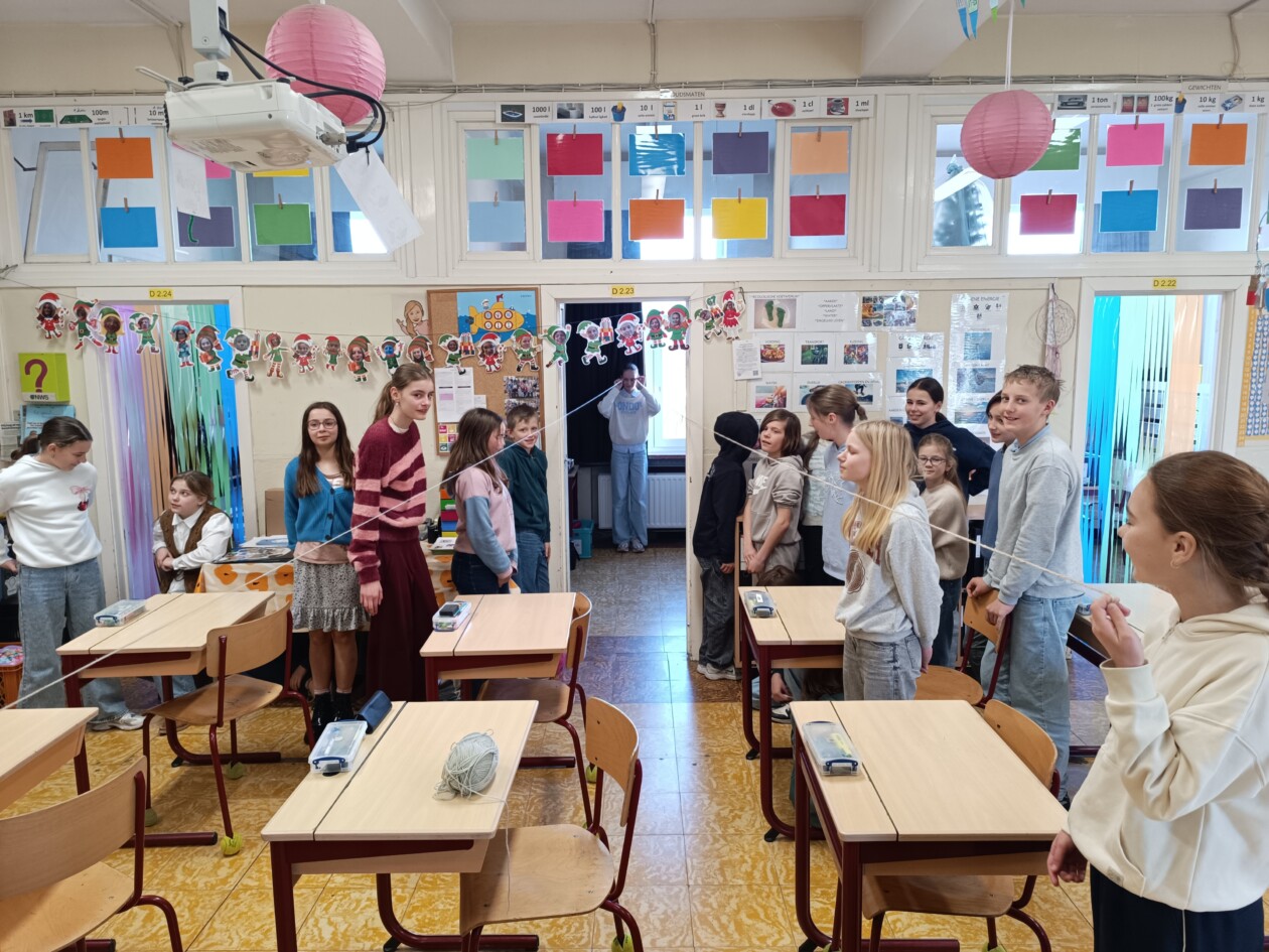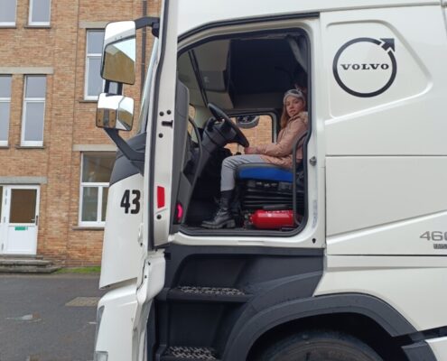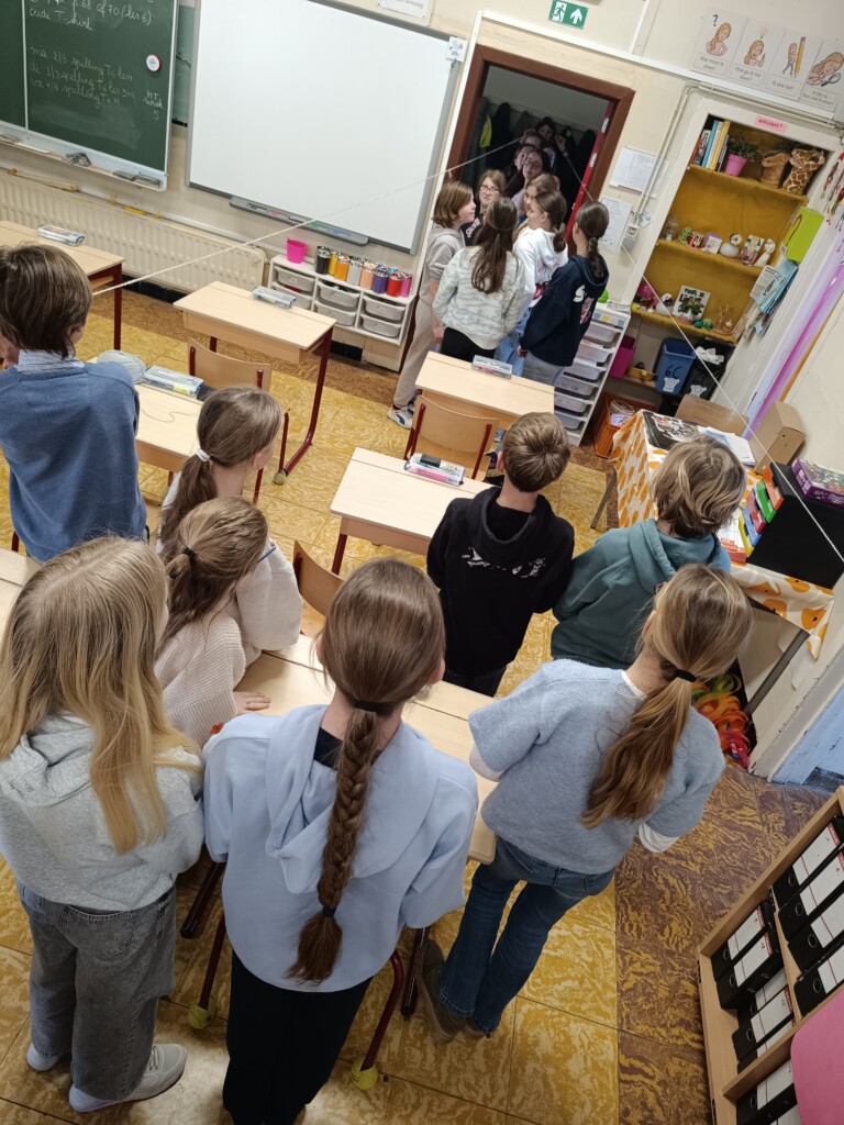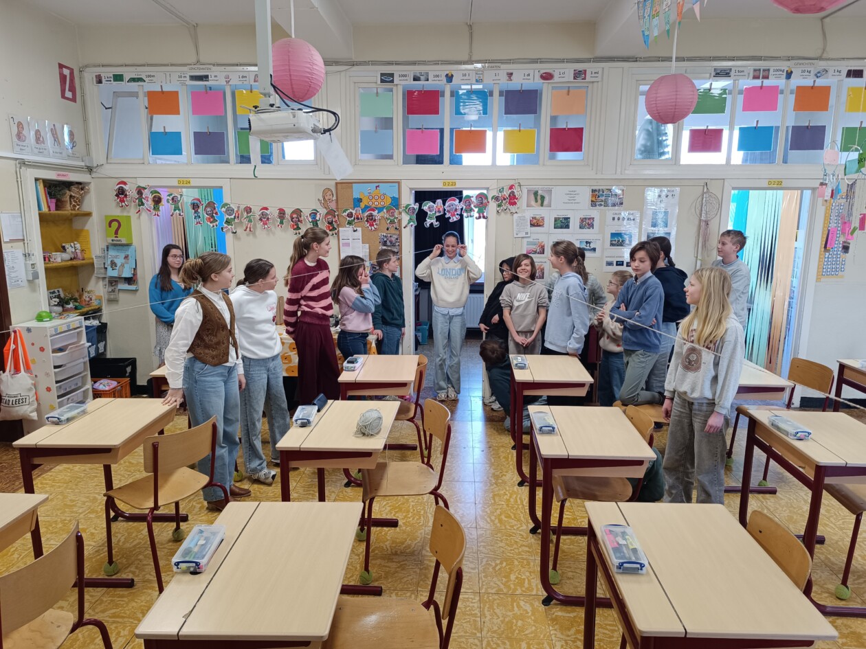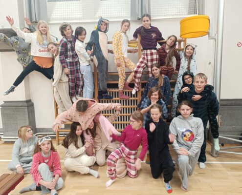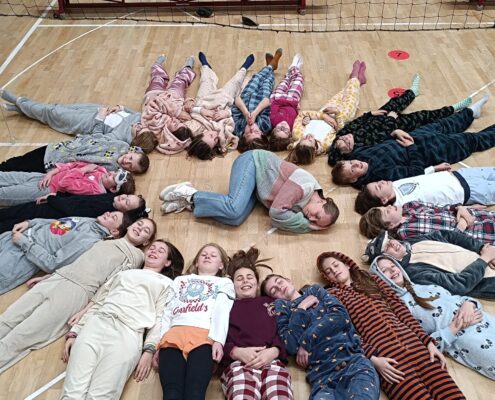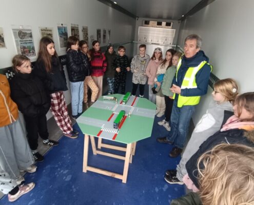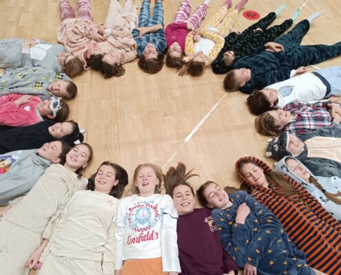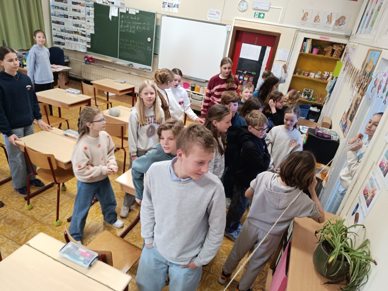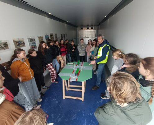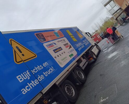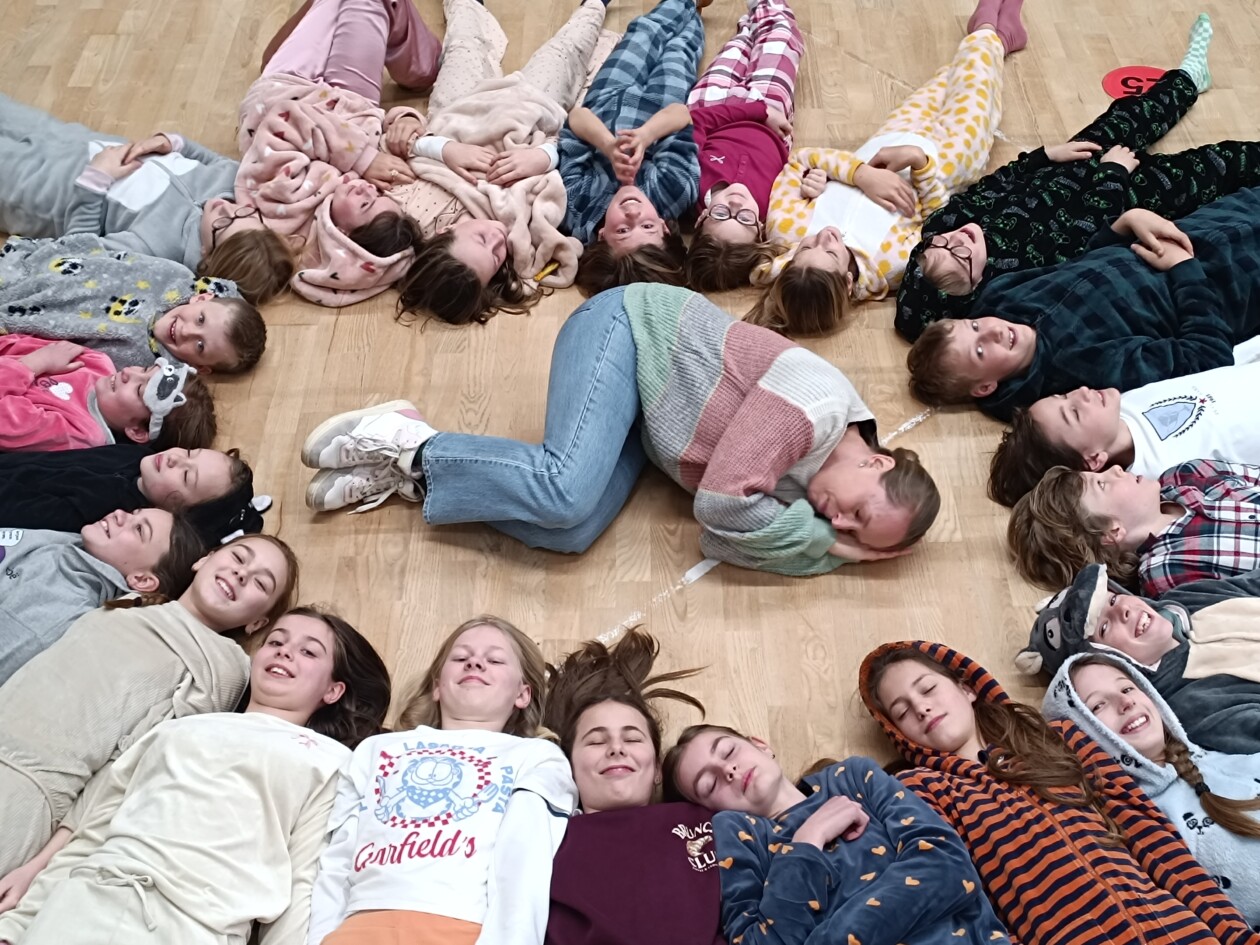 Dodehoekongevallen zijn een blijvend actueel thema en daarom zetten we op onze school actief in op dodehoekeducatie. Een vrijwilliger van “Transport en Logistiek Vlaanderen” kwam in maart naar school met de vrachtwagen voor de sensibiliseringscampagne “Veilig op weg”. We startten met wat theorie waaronder de 4 belangrijkste vuistregels om vervolgens in de praktijk de gevaren van de dode hoek te ondervinden. In maart kwamen we ook in pyjama naar school. We willen op die manier steun bieden aan zieke kinderen en jongeren die tijdelijk of langdurig niet fysiek naar school kunnen. Tijdens de wiskundeles ervaarden we nog eens concreet de kijklijnen in de klas. Wie uit de klas is wel zichtbaar en wie is niet zichtbaar vanuit een bepaalde positie? Hoe kan ik mijn gezichtsveld verbreden of versmallen? Wij herhaalden de theorie en beleefden het in praktijk.
