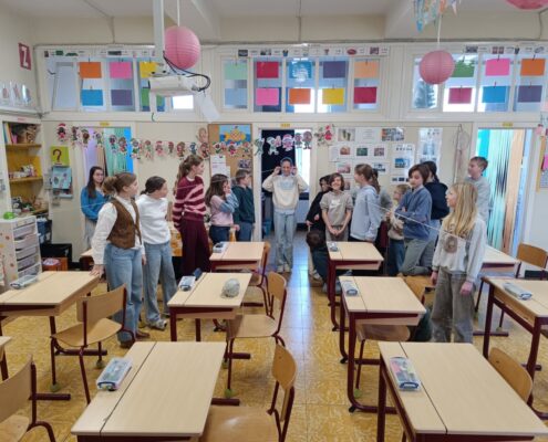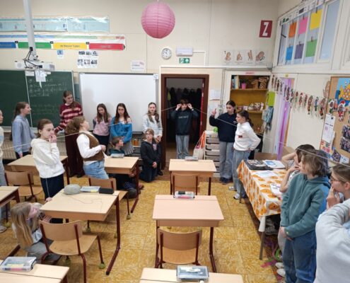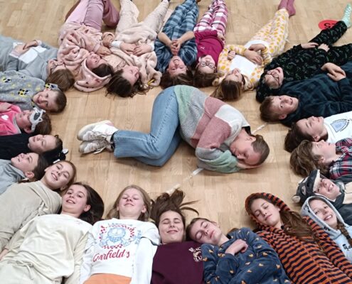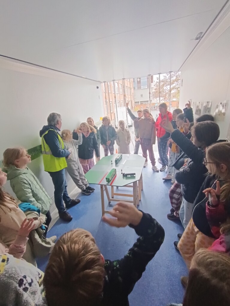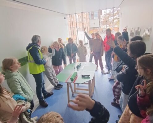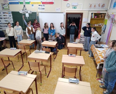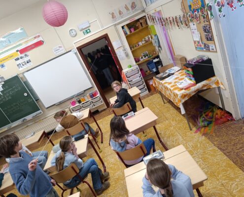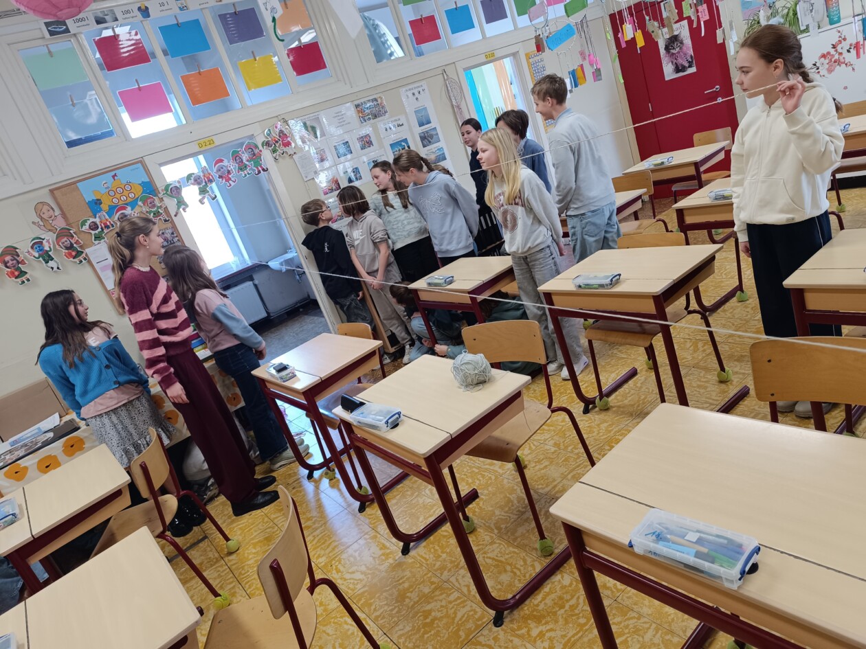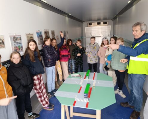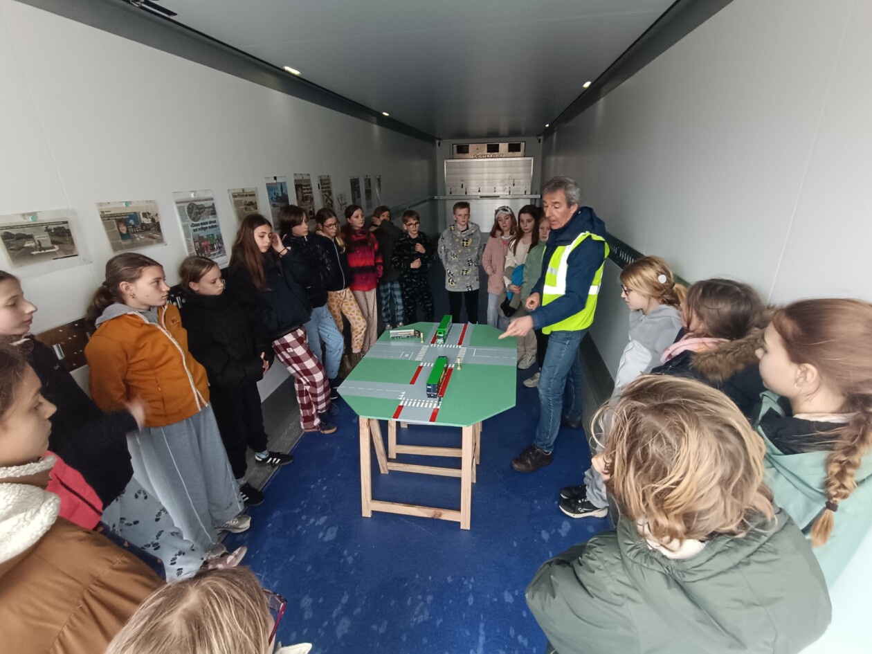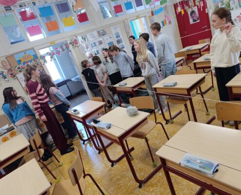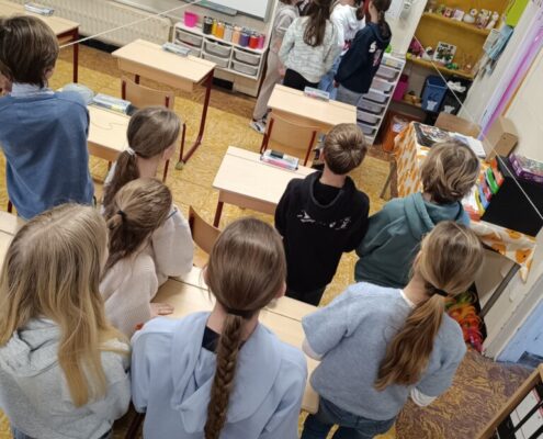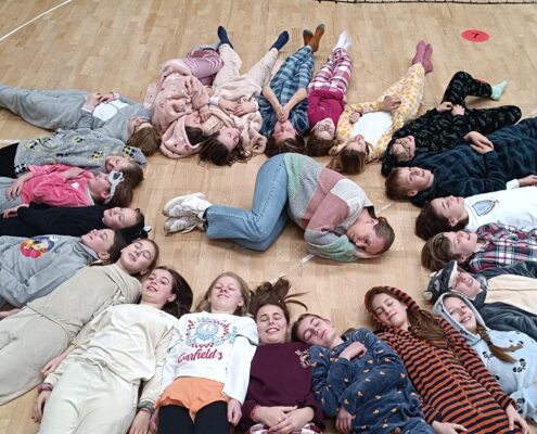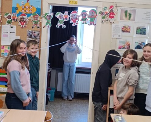 Dodehoekongevallen zijn een blijvend actueel thema en daarom zetten we op onze school actief in op dodehoekeducatie. Een vrijwilliger van “Transport en Logistiek Vlaanderen” kwam in maart naar school met de vrachtwagen voor de sensibiliseringscampagne “Veilig op weg”. We startten met wat theorie waaronder de 4 belangrijkste vuistregels om vervolgens in de praktijk de gevaren van de dode hoek te ondervinden. In maart kwamen we ook in pyjama naar school. We willen op die manier steun bieden aan zieke kinderen en jongeren die tijdelijk of langdurig niet fysiek naar school kunnen. Tijdens de wiskundeles ervaarden we nog eens concreet de kijklijnen in de klas. Wie uit de klas is wel zichtbaar en wie is niet zichtbaar vanuit een bepaalde positie? Hoe kan ik mijn gezichtsveld verbreden of versmallen? Wij herhaalden de theorie en beleefden het in praktijk.